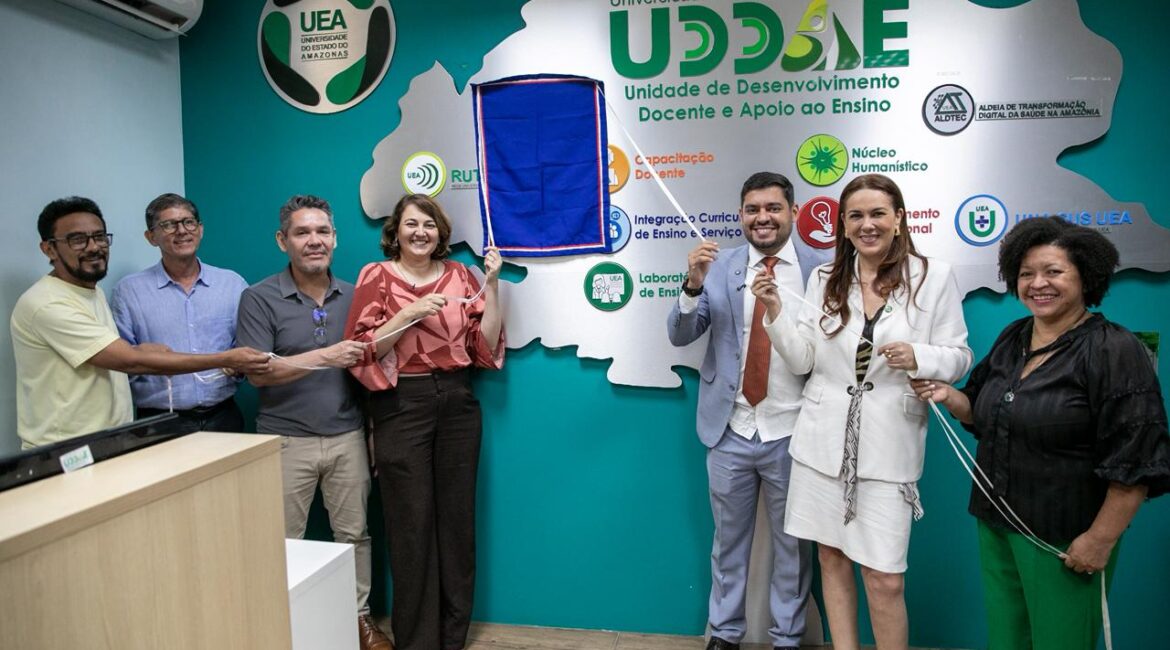 A Unidade de Desenvolvimento Docente e Apoio ao Ensino da Universidade do Estado do Amazonas (Uddae/UEA) celebrou, nesta segunda-feira (22/9), três anos de fundação com a inauguração de dois novos núcleos estratégicos: a Aldeia da Transformação Digital na Saúde e Inovação na Amazônia – Saúde, Tecnologia e Inovação – (Aldtec) e o Grupo de Pesquisa Saúde, Inovação e Tecnologia na Amazônia (Sita). A cerimônia contou com a presença do reitor da UEA, Prof. Dr. André Zogahib, e reforçou o papel da instituição como referência em inovação, ciência e tecnologia aplicadas à saúde na região.
